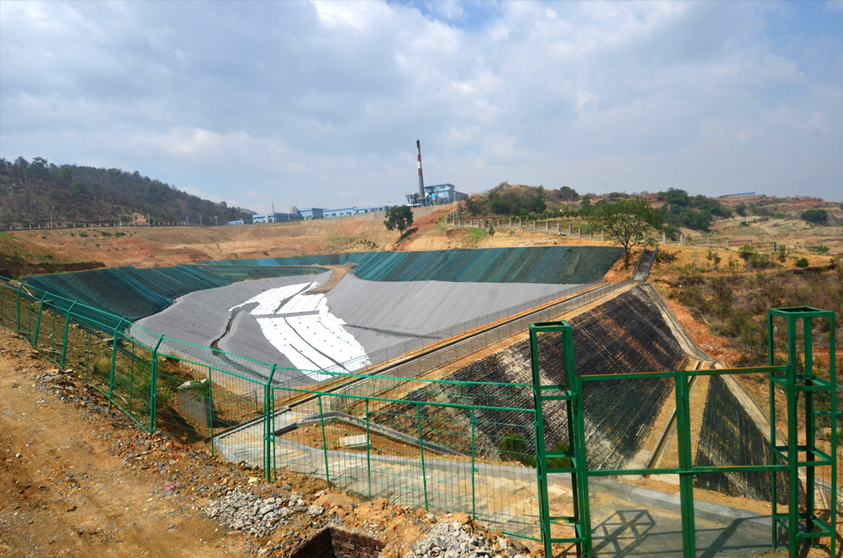 安全填埋庫(kù)區(qū)一期設(shè)計(jì)總庫(kù)容約21.0×10?m3;可滿足10a服務(wù)年限的填埋要求。安全填埋庫(kù)擋壩采用加筋土石壩,水平防滲系統(tǒng)采用雙人工襯層結(jié)構(gòu),滲瀝液和次滲瀝液重力流至下游的滲瀝液調(diào)節(jié)池,滲瀝液產(chǎn)量12t/d,滲瀝液調(diào)節(jié)池有效容積1200m3。